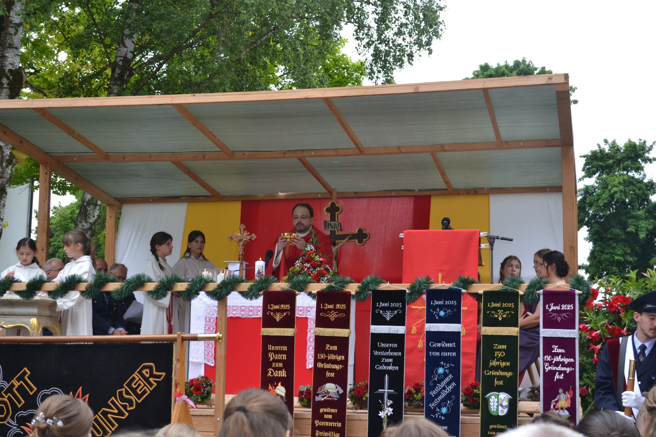 Nach der Feier der Eucharistie erbat Dekan Eckl den Segen für die restaurierte Fahne, die Erinnerungsbänder und schließlich für alle Mitfeiernden, ehe die Liturgie mit dem Te Deum schloss.