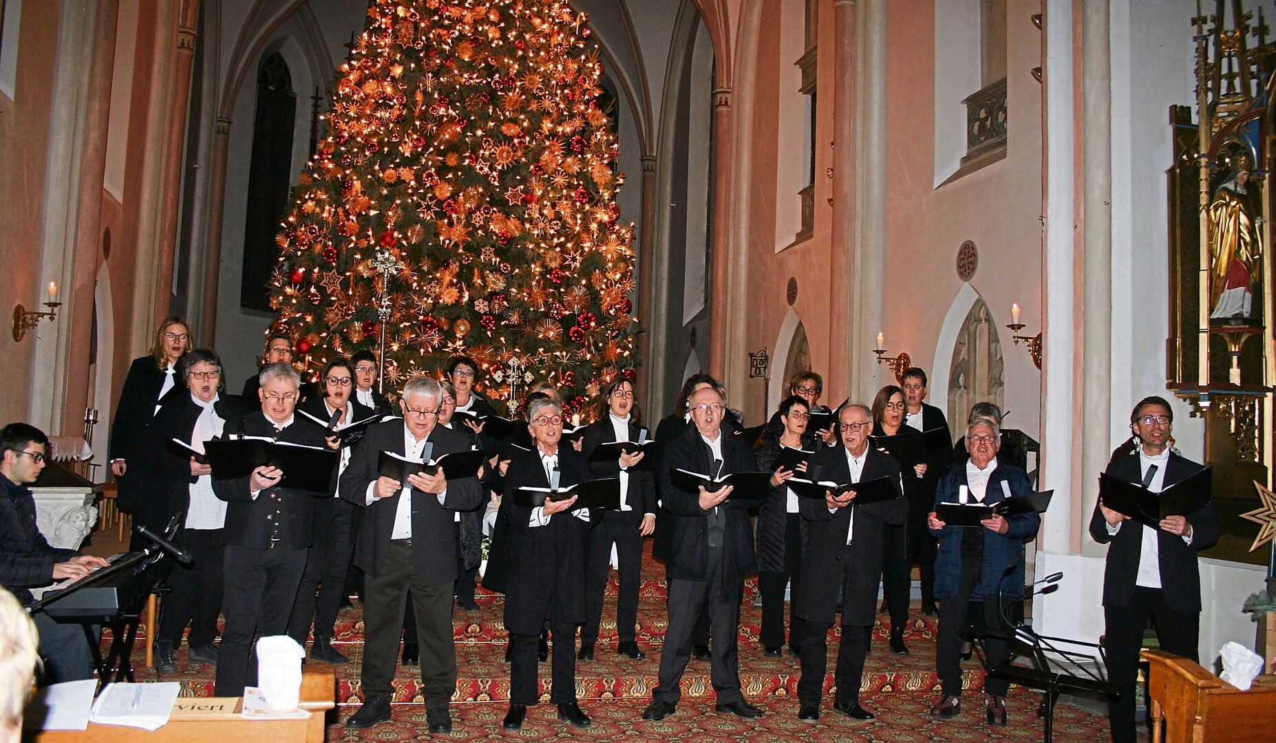 Die Gesamtleitung hatte Thomas Eiserle. Nach dem Lied „Es ist ein Ros entsprungen“, gesungen vom Kirchenchor, begrüßte er die Zuhörer. Er bedankte sich für den überaus zahlreichen Besuch. Der Eintritt war frei. Eiserle zeigte auf eine im Kirchenschiff liegende alte Türe, die auf den Untergang der „Titanic“ hinweisen sollte, wo sich im Film dazu Jack und Rose nach dem Untergang des Schiffs klammerten. Die Requisite deshalb, weil auch im Programm das bekannte Lied stand. Eiserle informierte kurz über den Ablauf und den Programminhalt. Leider fiel Sopranistin Isabell Pany krankheitsbedingt aus. Kurzfristig wurde das Programm geändert mit einem Auftritt von Anna Andreeva (Geige). Es folgte das Kyrie eleison und „Christmas Laudamus“ (Kirchenchor). Weitere Titel präsentierte der Kirchenchor „Ding dong merrily on high“, „My heart will go on“ und „Dir gehört mein Herz“. Neben weiteren Interpretationen folgte das „Ave Maria“, gespielt von Tabea Weich (Tuba) und Thomas Eiserle (Orgel). „Agnus Dei – How great thou art“ sang der Kirchenchor und auch „All on silent night“, begleitet von Tabea Weich am Cello. Stimmengewalt zeigte der Chor mit dem bekannten Lied „Transeamus usque Bethlehem. Es folgte ein Christmas medley von Marion Hellerer (Trompete) und Thomas Eiserle (Orgel).